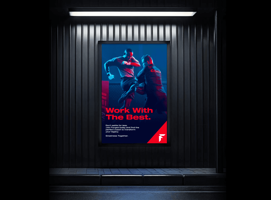A two-month brand system for Forged, a premium martial arts gym connecting athletes and coaches through a focused digital and physical experience. I developed the identity and platform language to bring clarity and unity across every touchpoint without losing the intensity that defines combat sports. The result is a shared environment for athletes and coaches to build long-term competitive relationships in MMA.