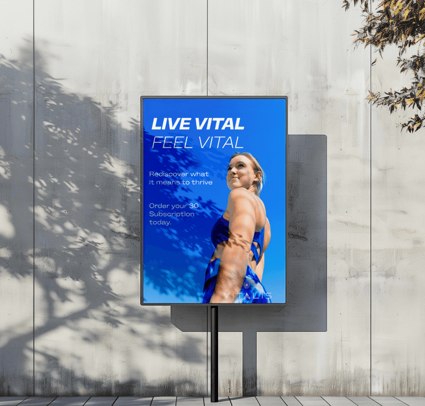 A two-month brand identity and digital presence for Vitalis, a modern health supplement company built around clarity and trust. I developed a restrained visual system and clear digital structure designed to cut through a category usually defined by over-marketing. The result is a focused identity that communicates health benefits transparently, supporting credibility and consistency across products and every digital touchpoint.